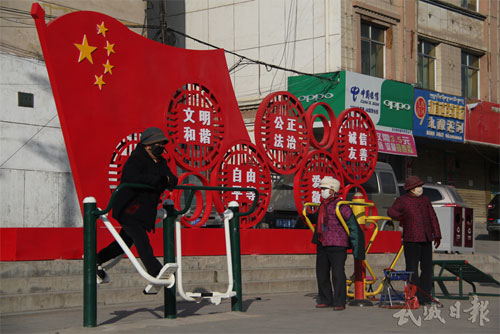 11月3日,天祝县城社会主义核心价值观主题宣传一角。今年,该县在城乡公园广场、公共交通设施、社区、学校等场所设置公益广告宣传牌,营造了浓厚的社会主义核心价值观宣传氛围。